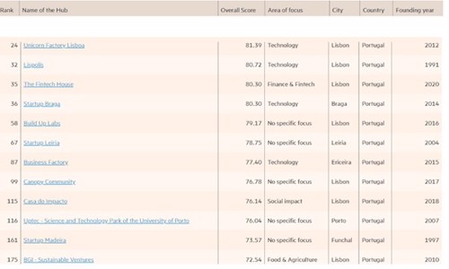 Discover the 12 most innovative Portuguese startup hubs in Europe, according to the ranking: